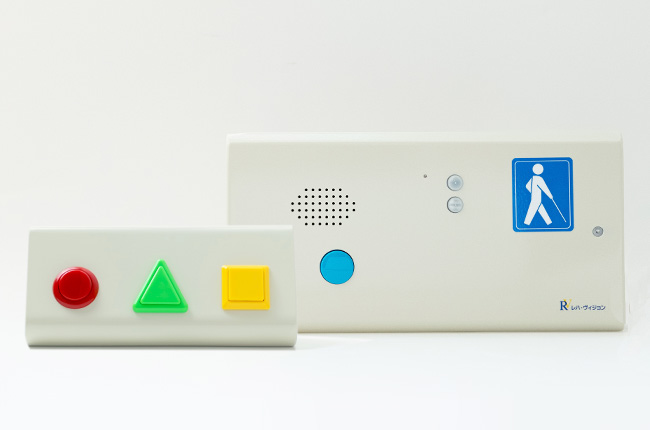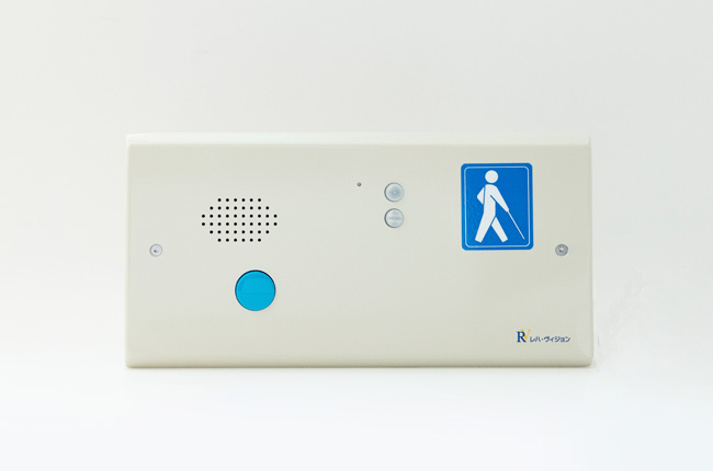 トイレ個室内鍵横に設置します。トイレ便房の情報を必要な人だけに音声案内します。押しボタン式で、いつでも自分のタイミングで音声を流すことができます。